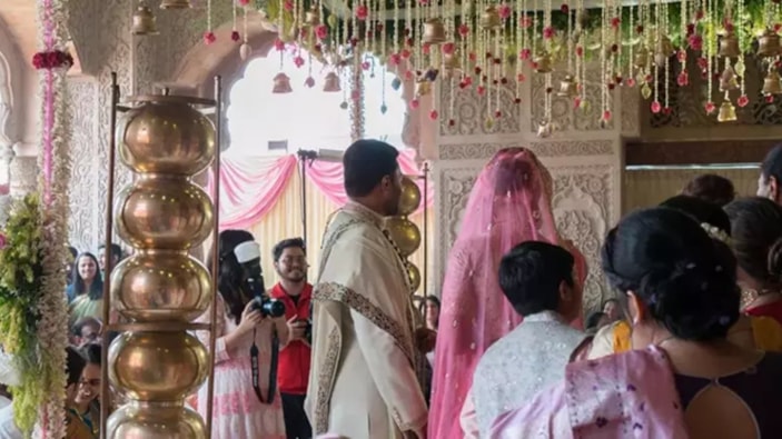 Hindistan'da düzenlenen düğün, ilginç anlara sahne oldu.