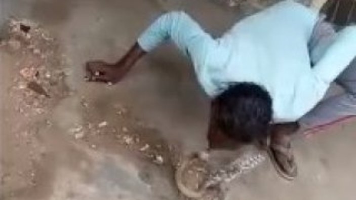 Güney Hindistan'ın Bhadravathi kentinde bir kiş,i yılanın yakalanması için yardım istedi.