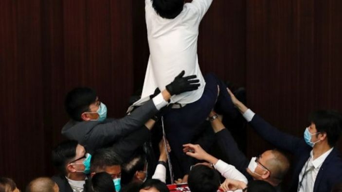 Hong Kong meclisinde kavga çıktı. Hükümet yanlıları ile muhaliflerin birbirine girdiği parlamento, savaş alanına döndü. Hastaneye kaldırılan milletvekilleri var.
