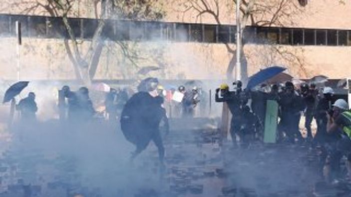 Güvenlik güçleri ile göstericiler arasındaki çatışmanın, üniversite yakınındaki Cross-Harbour Tüneli'ne taşındığı kentte kaos ortamı hüküm sürüyor.