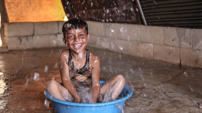 Aşırı sıcak havalarla güçlükle mücadele ediyoruz. Çocukların hasta olmaması için onları depoladığımız sularla serinletilmeye çalışılıyoruz.
