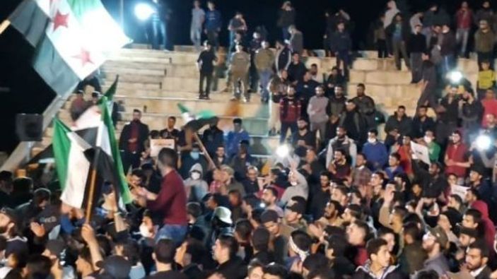 Göstericiler, "Ne Esad rejimi, ne mülteci kampları... Biz vatanımızı geri istiyoruz." şeklinde slogan attı.