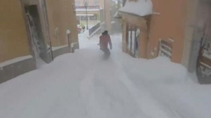 " target="_blank">Fransa'nın kar altındaki dar sokaklarında snowboard keyfi VİDEO