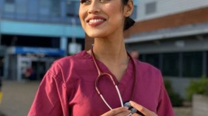 Ziyaret için gittiği Hindistan'dan apar topar dönen 24 yaşındaki güzel, İngiltere'de korona hastalarına yardımcı oluyor.