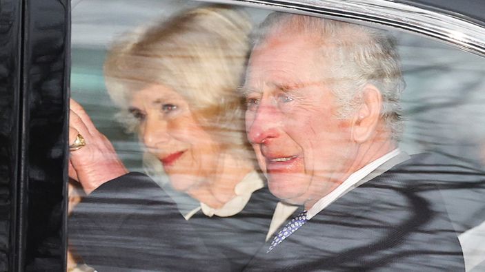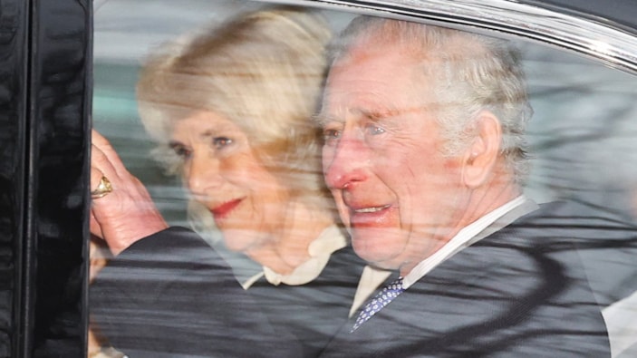 Charles ve eşi Camilla, araçla ayrılırken kameralara yansıdı. İkilinin keyfinin yerinde olduğu görüldü.