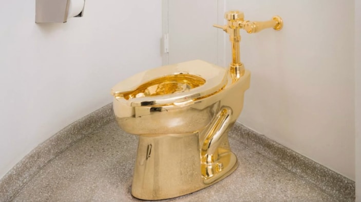 ABD'de 2016 yılında sergilenen ve en az 100 kişinin sıraya girerek kullandığı altın klozet, daha sonra Blenheim Sarayı'na taşınarak, Churchill'in dünyaya geldiği odanın karşısındaki alana yerleştirildi.