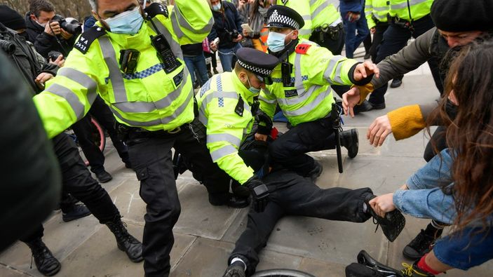 İngiltere'nin başkenti Londra'da polise gösterilere müdahalede daha fazla yetki veren yasa tasarısına karşı yapılan protestoda, eylemcilerle polis çatıştı.