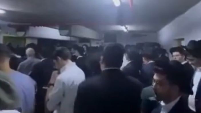 Bölgede yaşayan Haredi Yahudilerinin toplu halde sığınaklarda dua ettikleri anlar kameralara yansıdı.
