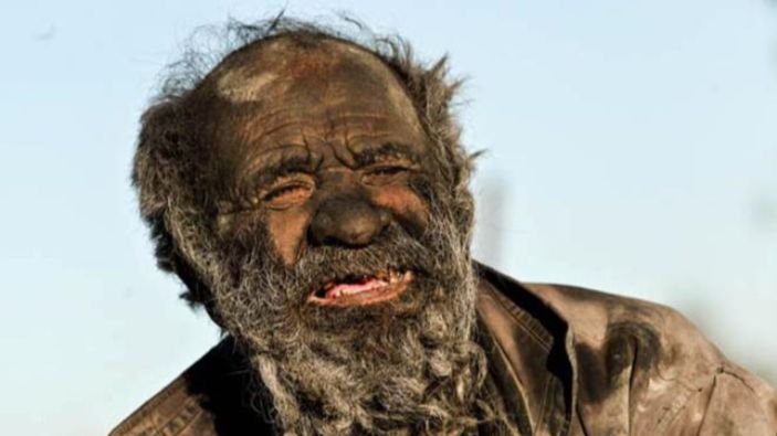 Bir evi olmayan ve açık alandaki deliklerde yaşamını devam ettiren Hadji'nin, vücudunu kaplayan kir tabakasının yanında 65 yıldır tıraş olmadığı da belirtildi.