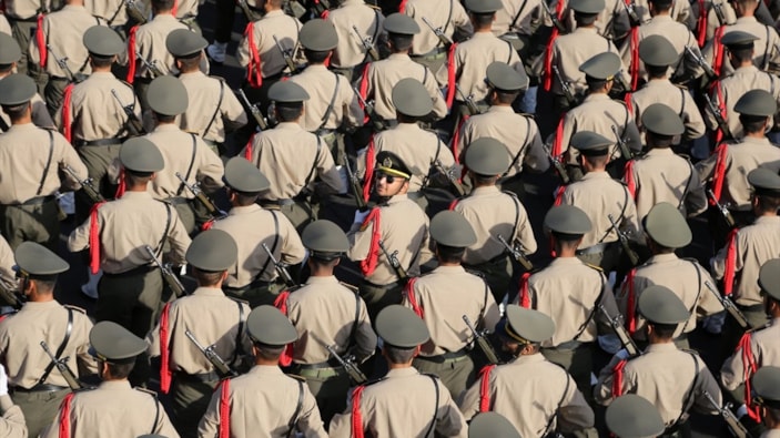 Bu süreç devam ederken İran'da "Kutsal Savunma Haftası" olarak adlandırılan İran-Irak savaşının başlangıcının 44'üncü yıl dönümü dolayısıyla başkent Tahran'da, 1979 yılında gerçekleşen devrimin lideri Humeyni'nin türbesinde askeri geçit töreni düzenlendi.