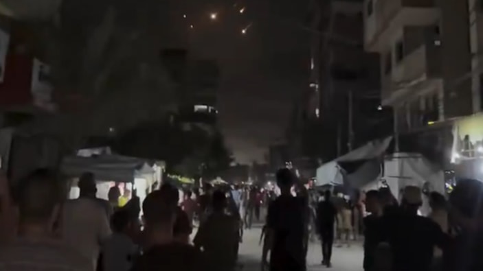 Tel Aviv'de dumanlar yükselirken İran füzelerinin İsrail topraklarına düştüğü anlar Gazze halkı tarafından görüntülendi.