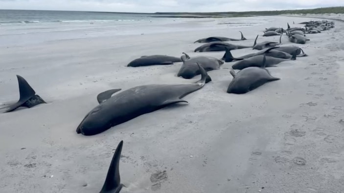 İskoçya'da kıyıya vuran 77 balinanın tamamı öldü