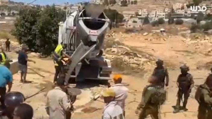 Tarım arazisine zarar veren İsrail askerleri, çiftçi ailenin su kuyularını transmikser adlı iş makinesi vasıtasıyla beton dökerek kapattı.
