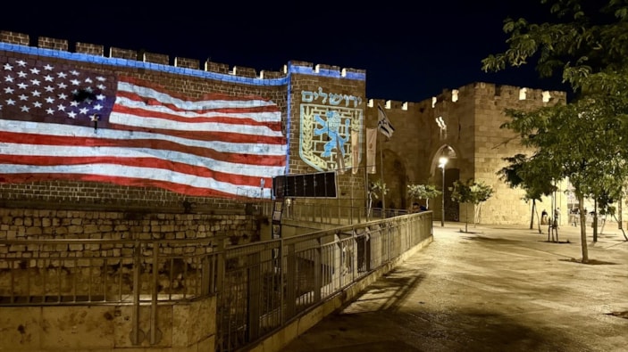 İsrail, Kudüs surlarına ABD ve İsrail bayraklarını yansıttı