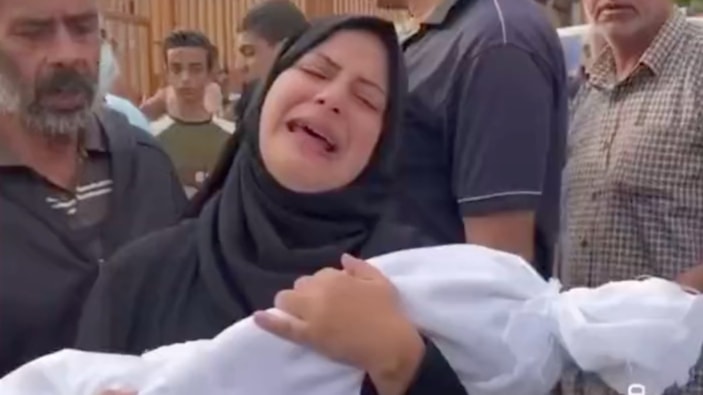 Filistinli bir anne, İsrail hava saldırılarında şehit olan bebeğinden ayrılamadı. Çocuğunun cansız bedenini kucağında taşıyan anne "Bırakın kucağımda kalsın" diyerek ağladı.