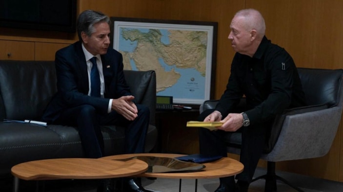 İsrail Savunma Bakanlığından yapılan açıklamaya göre İsrail Savunma Bakanı Yoav Gallant, ülkesini ziyaret eden ABD Dışişleri Bakanı Antony Blinken ile ikili ve İsrailli askeri yetkililerin de katıldığı heyetler arası görüşme gerçekleştirdi.