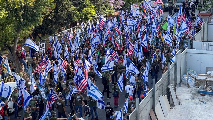 Yedek askerlerin oluşturduğu “Silah Arkadaşlığı” adlı protesto grubu, ellerinde İsrail ve ABD bayraklarıyla, Batı Kudüs’te Başbakanlık konutunun yakınlarındaki caddede toplanarak, Netanyahu karşıtı gösteri yaptı.