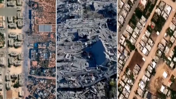İsrail'in Gazze'de yıktığı mahalle uydudan görüntülendi