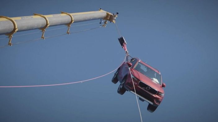 İsveç otomobil markası Volvo, güvenlik testi kapsamında 10 yeni aracı 30 metre yükseklikten aşağıya attı.