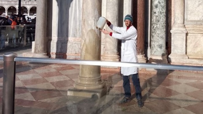 İtalya'da iklim eylemi: Aziz Markus Bazilikası'na çamurlu su döktüler
