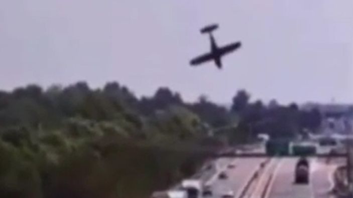Otoyola düşen uçaktan etkilenen araç olmadığı ancak uçağın düştükten sonra alev aldığı belirtildi.