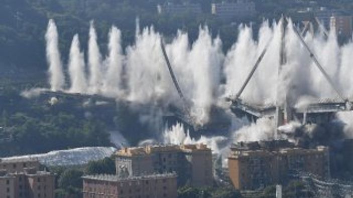 İtalya’daki dev Morandi Köprüsü'nün kalıntıları, çevresinde yaşayanların tahliye edilmesinin ardından yıkım uzmanları tarafından kontrollü bir şekilde patlatıldı.
