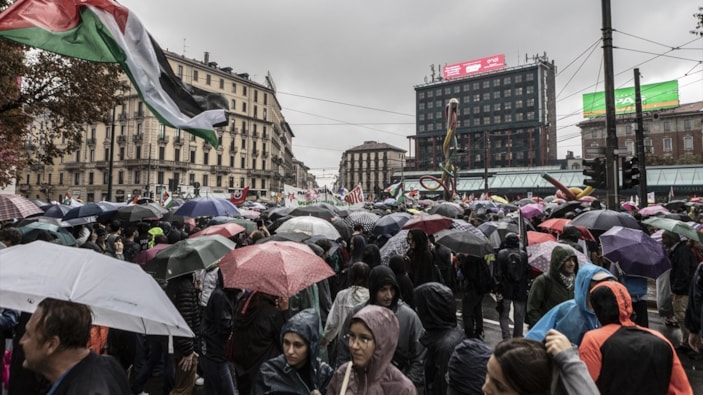 Bu kapsamda İtalya’nın Milano kentinde, USB (Sindacato Autonomo di Base) sendikasının çağrısıyla İsrail’in Gazze’ye yönelik süren saldırılarına karşı protesto gösterisi düzenlendi.