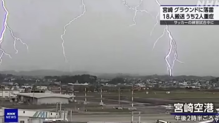 Miyazaki eyaletinde futbol oynayan öğrencilerin üzerine yıldırım düşmesi sonucu 2’si ağır 18 yaralı hastaneye kaldırıldı.