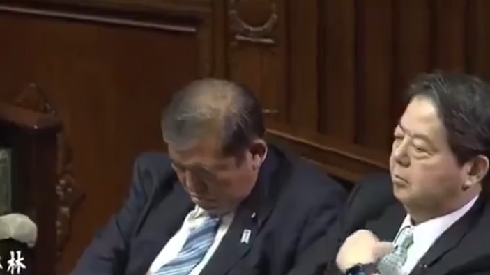 Japonya'da Liberal Demokrat Parti (LDP) lideri İşiba Şigeru mecliste yapılan seçimde yeniden başbakan olurken, uyukladığı anlar kameralara yansıdı..