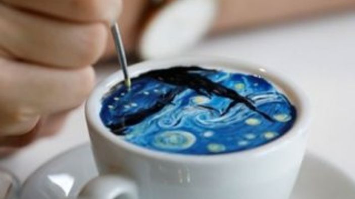 Kahve üzerine Van Gogh kopyalayan barista ViDEO