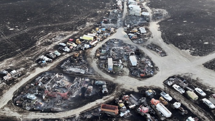San Joaquin kentinde meydana gelen orman yangınında, hurdalıktaki onlarca araç yanarak kullanılamaz hale geldi.