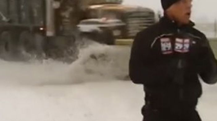 ABD'de bir yerel televizyon kanalının muhabiri, kar küreme aracının savurduğu karın hedefi oldu.
