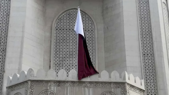 Suriye'nin başkenti Şam'da yeniden açılan Büyükelçilik binasında, Katar bayrağı göndere çekildi.