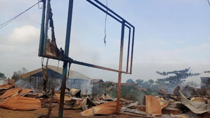 Saldırıda, çok sayıda ev ve dükkan ateşe verildi.