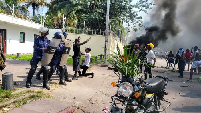 Goma kentinde Ruanda destekli M23 isyancılarının kontrolü ele geçirmesi üzerine başkentte sokaklar karışırken, protestocular büyükelçilikleri hedef alarak büyükelçilik binalarını ateşe verdi.