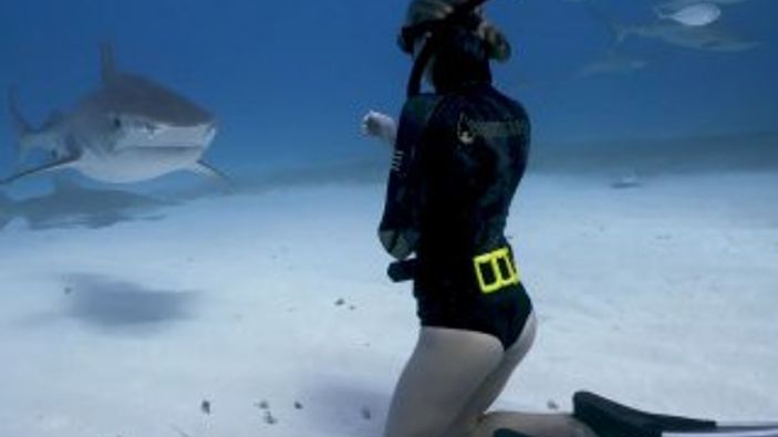 Bahamalar'da su altına dalış yapan Nikki Brady isimli profesyonel dalgıçın, köpek balığıyla yakınlaştığı anlar, su altı fotoğrafçısı ve kameraman Szilard Janko tarafından görüntülendi.