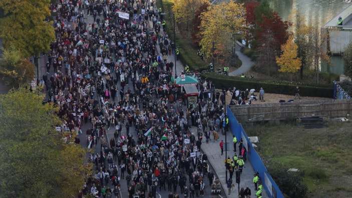 7 Ekim'den bu yana İsrail'in havadan, karadan ve denizden saldırısına uğrayan Gazze halkı için harekete geçen 300 bin kişi, başkent Londra'da yürüyüş düzenledi. Hükümet ise İsrail'e destek veriyor.