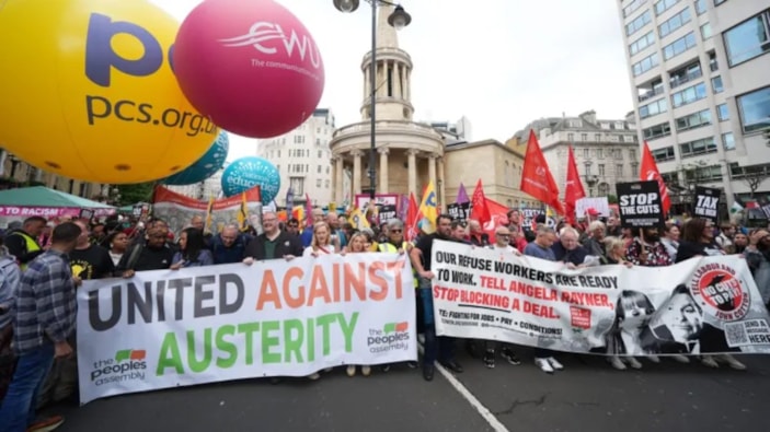 İngiltere’nin başkenti Londra’da yüzlerce kişi, hükümetin uygulamaya koyduğu yeni kemer sıkma politikalarına karşı yürüyüş düzenledi.