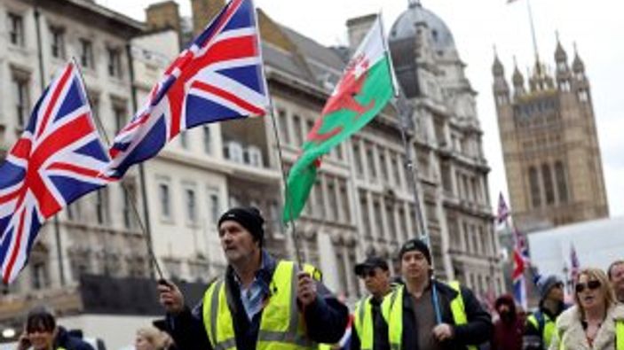 Öte yandan, İngiliz kamu yayın kuruluşu BBC önünde toplanan yaklaşık 5 bin kişilik grup, Fransa'daki Sarı Yelek hareketinin liderlerinden Erick Simon ve Laurie Martin'in de yer aldığı kortejle Trafalgar Meydanı'na yürüdü.