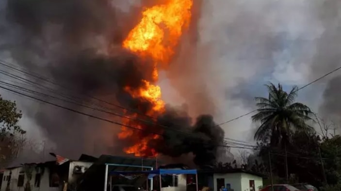 Malezya'da doğal gaz boru hattında yangın çıktı