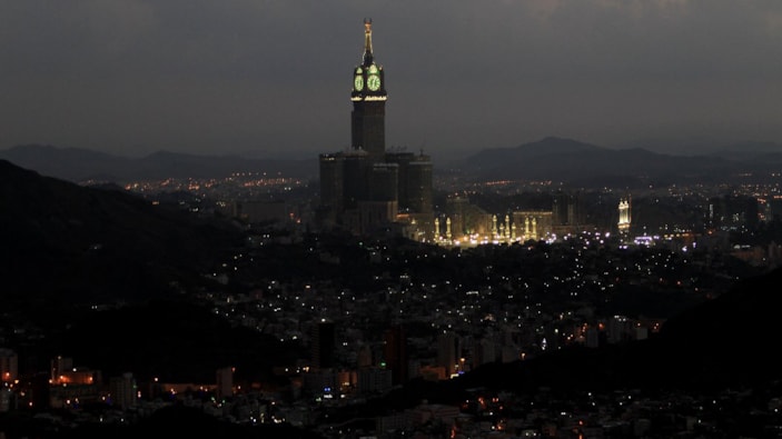 Mekke’deki dünyanın en yüksek yapılarından biri olan 601 metre yüksekliğe sahip olan Kraliyet Saat Kulesi'ne yıldırım düştü.