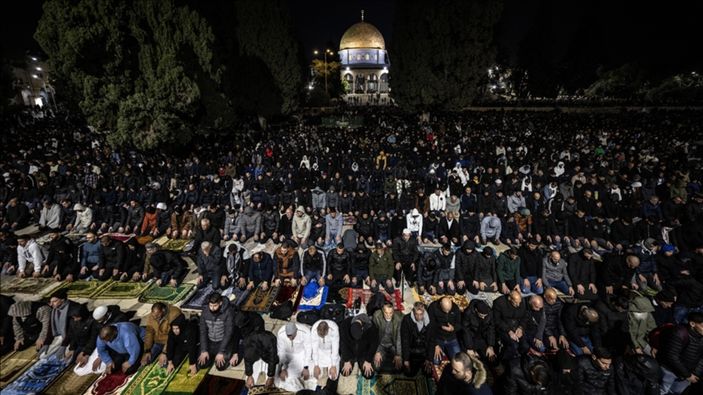 Ancak İsrail'in tüm engellemelerine rağmen Mescid-i Aksa’nın idaresinden sorumlu Kudüs İslami Vakıflar İdaresi, yaptığı yazılı açıklamada, bugün yatsı ve teravih namazına 100 bin Müslümanın katıldığı belirtildi.