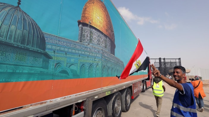 Mısır'dan yola çıkan yardım tırları Refah Sınır Kapısı’ndan geçti...