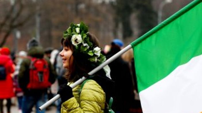 Rusya'nın başkenti Moskova'da, Aziz Patrick Günü kutlamaları renkli görüntülere sahne oldu.