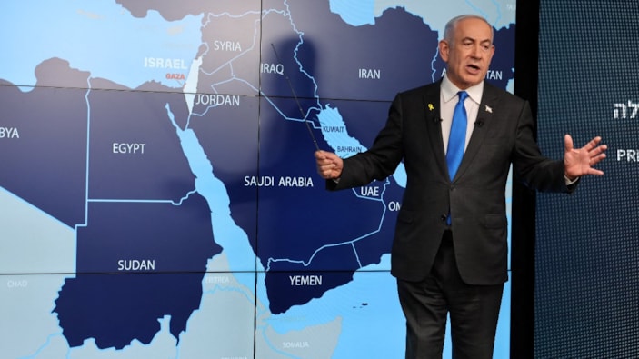 Netanyahu, Basın toplantısı sırasında gösterdiği haritada Batı Şeria'nın yer almamasını "Bu harita Ölü Deniz'i de göstermiyor. Ürdün Nehri'ni de göstermiyor." sözleriyle savundu.