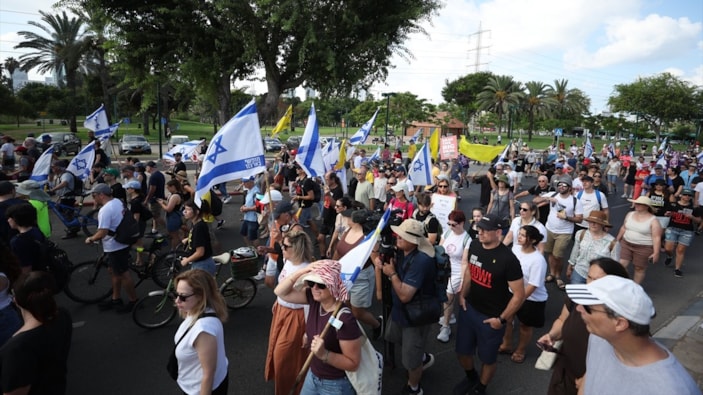 İsrail Güvenlik Kabinesi'nin Gazze kentini işgal kararı sonrası Netanyahu hükümetinin ateşkes ve esir takası anlaşması imzalaması talebiyle haftanın ilk iş günü yapılan genel grevde halk, başta Tel Aviv olmak üzere pek çok kentte gösteriler düzenliyor.