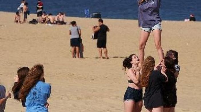 Amerika'da koronavirüsün en fazla can aldığı kentlerin başında gelen New York'ta havaların ısınmasıyla birlikte sahillere akın başladı.
