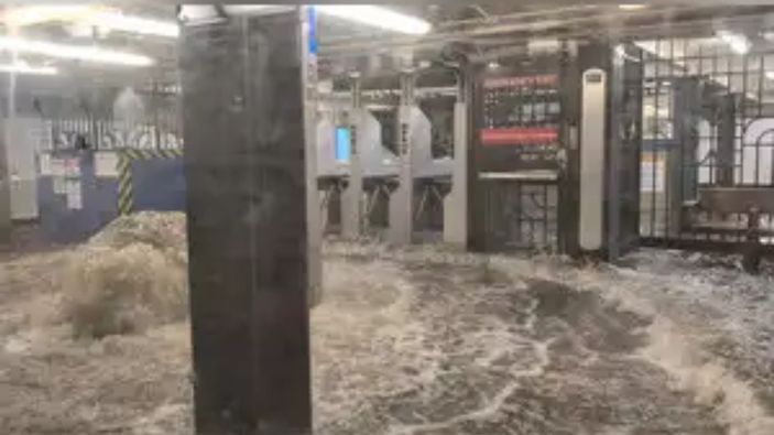 New York'ta şiddetli yağış sonrası metro istasyonlarını su bastı