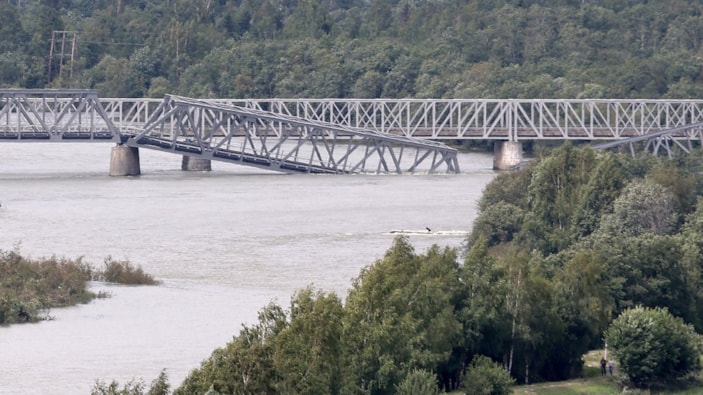 Norveç’te Laagen Nehri üzerindeki demir yolu köprüsü şiddetli yağışlar nedeniyle çöktü.