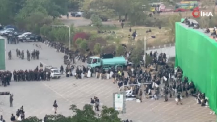 Sokağa inen destekçiler başkent İslamabad yakınlarında polisle çatıştı.